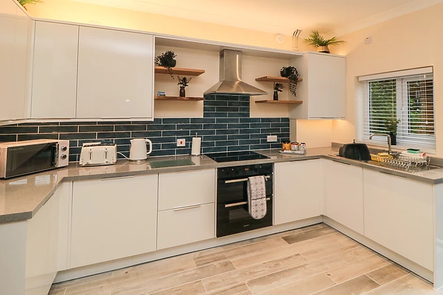 Step outside to the enclosed rear decked area, where you can enjoy meals at the picnic bench or unwind in the luxury of your own private hot tub.