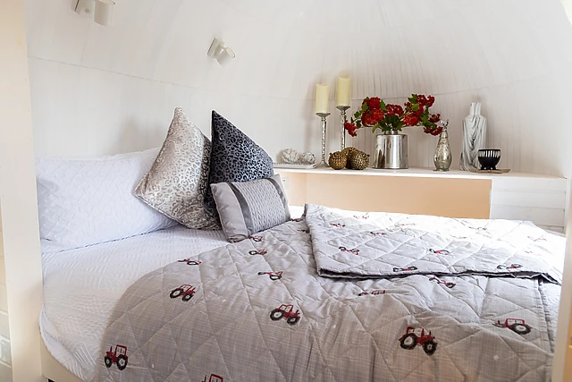 The accommodation comfortably sleeps two guests in a sumptuous double bed.