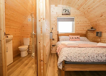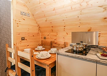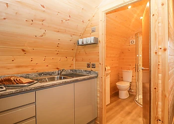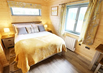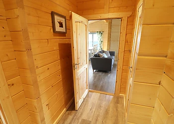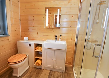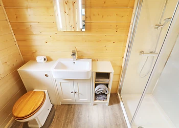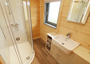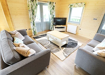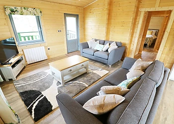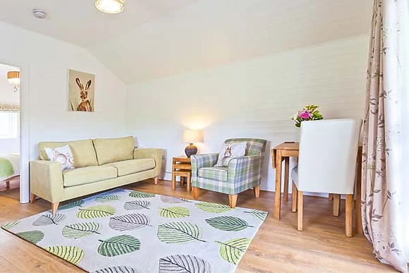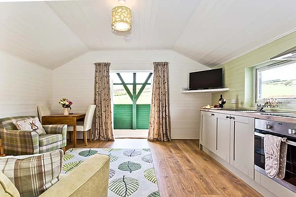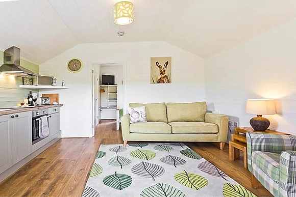 Set all on the ground floor this open plan lodge includes a compact kitchen, dining area and sitting area. There is a comfortable and cosy double bedroom which also has a TV and an en-suite shower room.