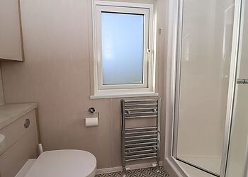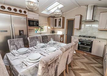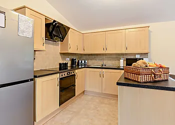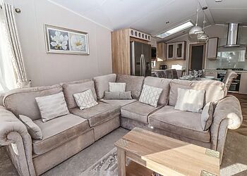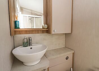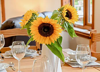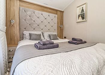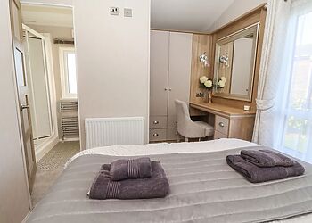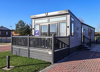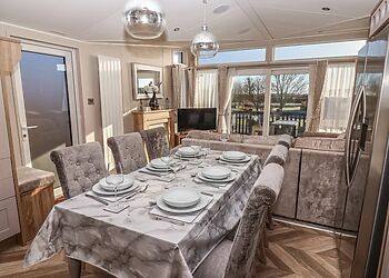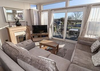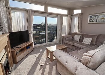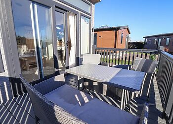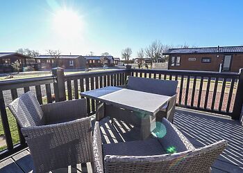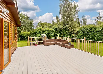 This log cabin near Stamford Bridge has two beautifully finished bedrooms and a very well-equipped contemporary kitchen that has quality travertine worktops for added luxury. The spacious sitting room has a full length picture window, which overlooks a large decked balcony.