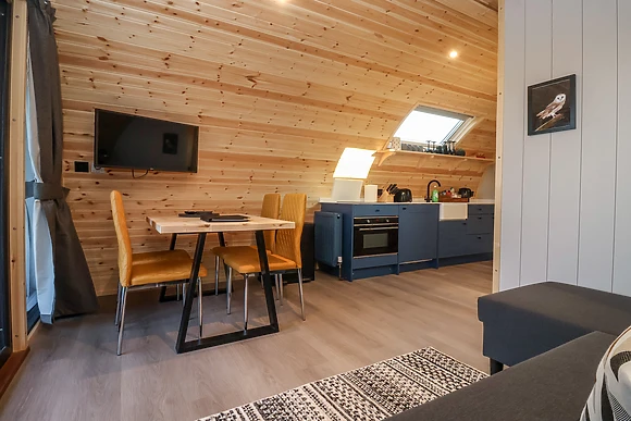 When sleep beckons, retire to the far end of the pod, where your double bed awaits, allowing you both to rest and refresh before embarking on another exciting day. Whether you are looking for relaxation or exploration, Barn Owl makes the perfect base for a romantic getaway.