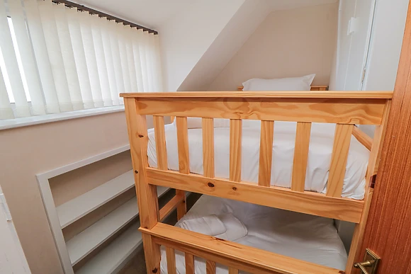The accommodation comfortably sleeps up to 10 guests, with a mix of double and bunk beds spread across five well-appointed bedrooms.