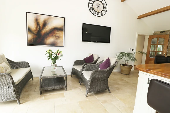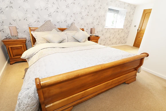 Exposed stone walls and wooden beams remind you of the barns rustic roots.For relaxed evenings in the spacious sitting room is perfect for enjoying/watching one of the DVD's on the large TV with surround sound. A large double bedroom with King size bed and a smaller bedroom with twin beds are connected by a devine Jack and Jill bathroom suite.