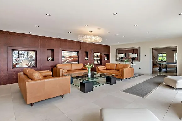 To one side, discover a fantastic games room equipped with a pool table and table tennis, while the formal lounge offers ample comfortable seating and a large smart TV for relaxed evenings. Move through to the impressive bar area, where floor to ceiling glass windows flood the room with natural light.