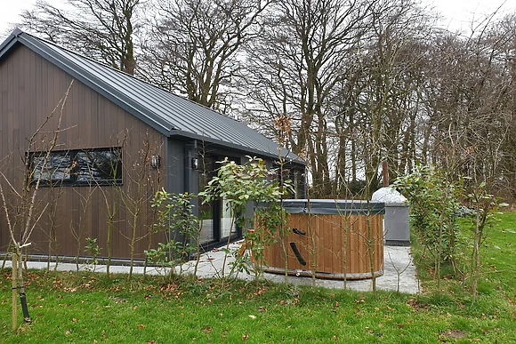 Yes, the accommodation includes a private hot tub located in the secluded rear garden, offering guests a luxurious spot to relax and unwind during their stay.