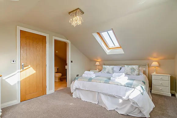 The master bedroom features a king-size bed and an en-suite shower room, while the second bedroom offers twin beds that can be converted to a super king-size upon request.