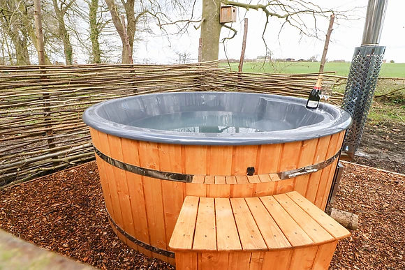 Yes, the accommodation boasts a wood-fired hot tub, providing a luxurious and relaxing experience for guests amidst the tranquil surroundings.