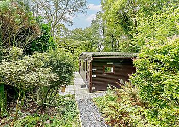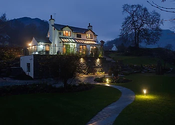 The garden's natural beauty is complemented by the stunning views of Elterwater Common and the Langdale Pikes.