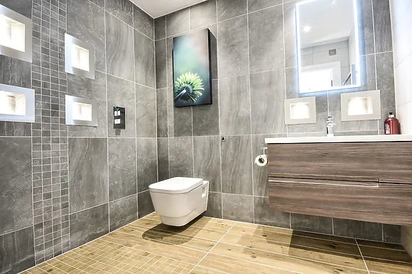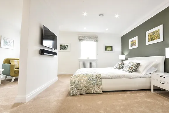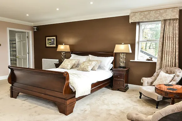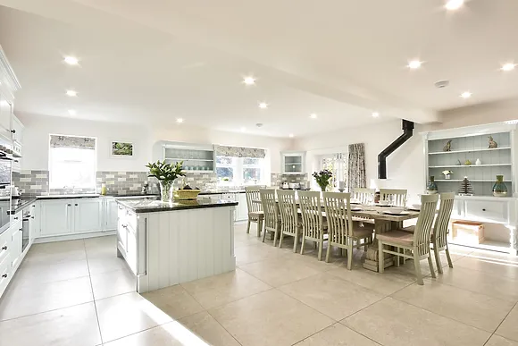 The property boasts six beautifully appointed bedrooms, each with its own character and en-suite wet room, ensuring privacy and luxury for all guests. One of the ground floor bedrooms even features a super-king-size bed that can be split into two singles for flexibility.