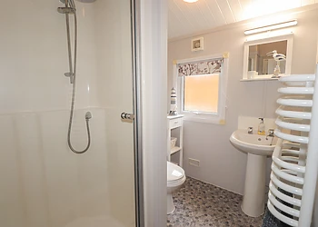 Inside, you'll find a modern open-plan living space with a fully equipped kitchen, dining area, and a cosy sitting area with an electric fire. The lodge also features a convenient washing machine and dishwasher, complemented by broadband/WiFi connectivity to keep you connected during your stay.