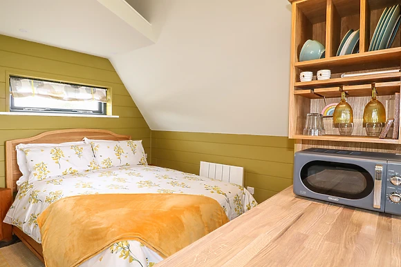 Accommodating two guests, the lodge features a sumptuous double bed, a well-appointed kitchen, and a cosy dining and sitting area.