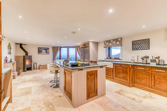 The barn conversion exudes a blend of traditional and contemporary styles, featuring two stylish wood burners that add to the cosy atmosphere during the evenings.