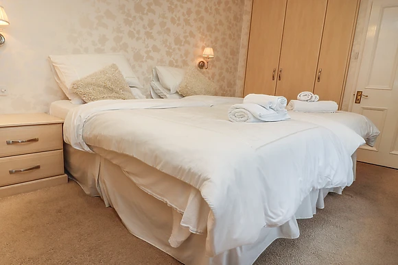 The property boasts three beautifully appointed bedrooms, each with its own TV and en-suite facilities, providing comfortable sleeping arrangements for up to six guests.