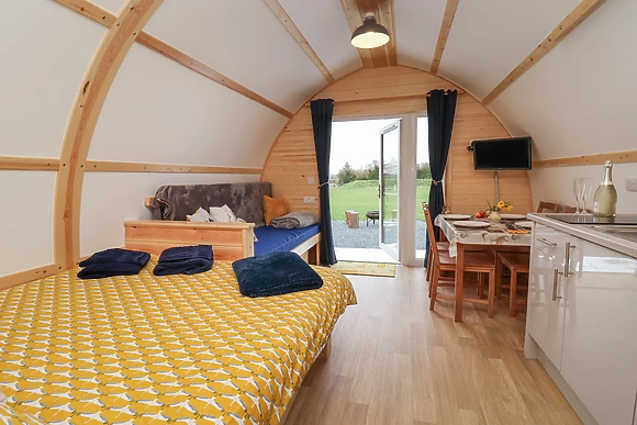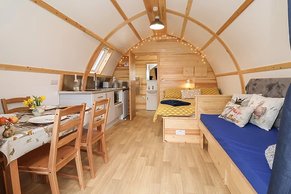 Tucked away in the breath-taking countryside in Little Kelk near Bridlington is Covey. This fabulous, dog-friendly glamping pod boasts an beautiful, studio-style interior completed by a double bed and sofa bed as well as a private outdoor area with barbecue, it also benefits from an excellent location that makes the most of the beauty of the coast and the serenity of the countryside and North York Moors National Park; an idyllic choice for couples, friends or small families looking for glamping retreat with their beloved canine companion.