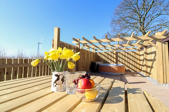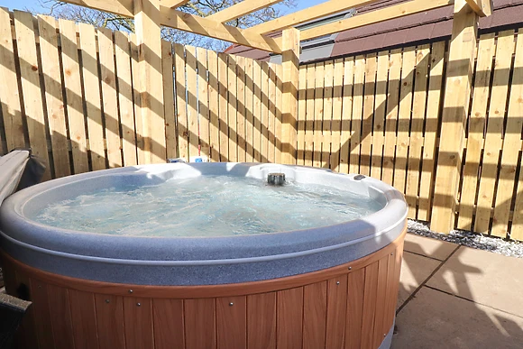 Yes, the accommodation boasts a private hot tub, providing an indulgent space for guests to relax and enjoy the peaceful surroundings.