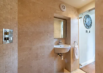 The bathroom is fitted with a bath and an overhead shower, perfect for a refreshing start to your day or a relaxing soak in the evening. Step outside onto the enclosed wraparound decking, where you can unwind with a good book or simply enjoy the calmness of your surroundings.
