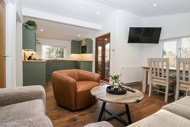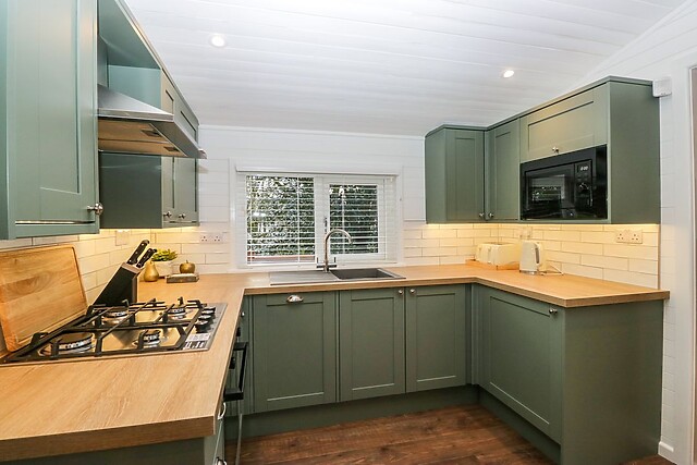 Put your well-trekked feet up in the sitting area with a film on the Smart TV as a delicious dinner cooks from an electric oven, gas hob, microwave, and fridge. Dig in at an intimate dining table for four or dine alfresco on the decking furniture, then take advantage of the dishwasher.