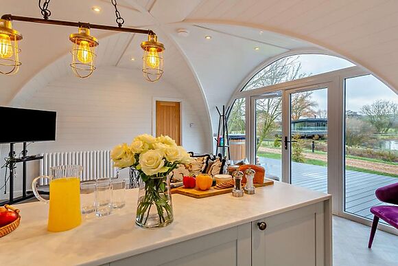 The Yorkshire Dales has some spectacular trails too, with the well trodden incline of Calver Hill just 16 miles away and the limestone tourist attraction of God s Bridge 17.5 miles away. Step inside this light and airy wood clad lodge, kick off your walking boots and instantly relax in the charming open plan living space.