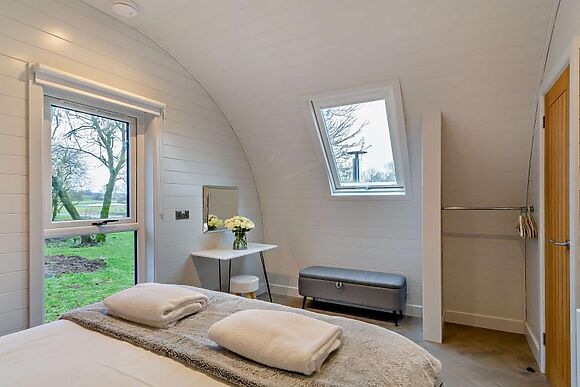 The double bedroom is decorated in calming tones and crisp white linens and boasts idyllic, rural views perfect for a great night s rest. The welcoming twin room is equally as charming.