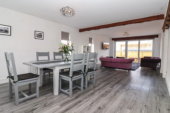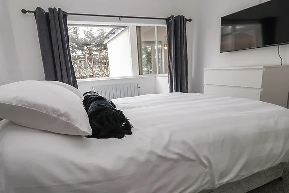 Guests can settle down and plan the day ahead of them in the open-plan sitting and dining room and indulge in hearty meals at the table, prepared using the ample amenities available in the nearby kitchen. When it's time to retire for some well-deserved rest, the master bedroom offers a double bed, en suite shower room and a Smart TV to drift away in comfort to your favourite shows.