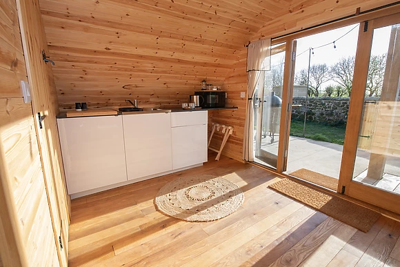 Glamping Pod 3 Harmony welcomes couples, friends, or solo travelers seeking a rural retreat to the countryside of Lebberston. Utilise the equipped kitchen by cooking up some tasty meals together, and snuggle up with your loved one for a quiet night in the sitting area.