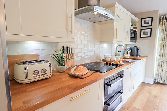 Indulge in the ultimate relaxation with the barn's private outdoor hot tub, where you can unwind under the stars. Inside, the cosy open fire beckons for snug evenings, while the well-appointed kitchen and dining area with a Juliette balcony provide the perfect setting for delightful meals with a view.