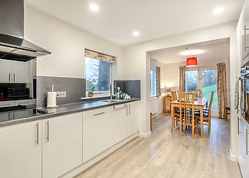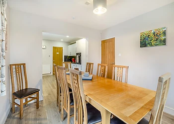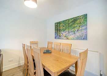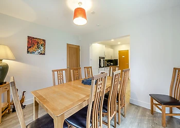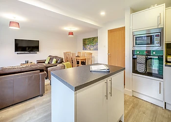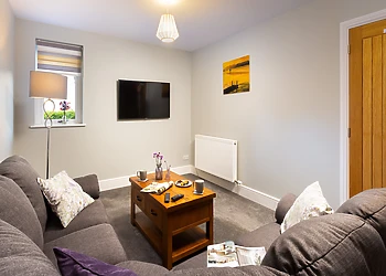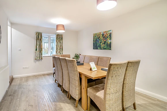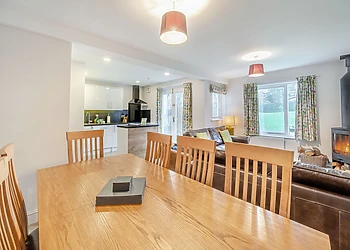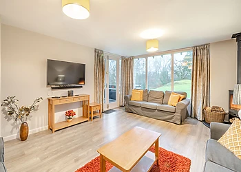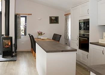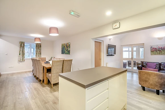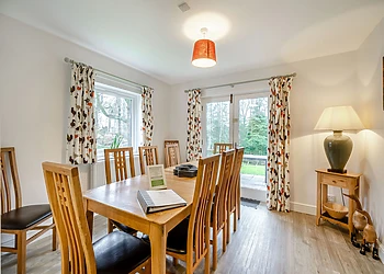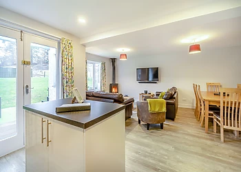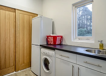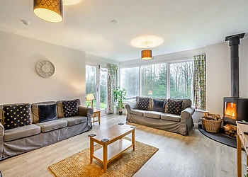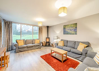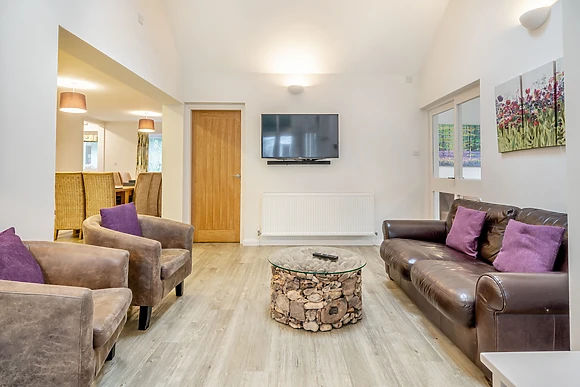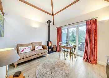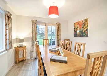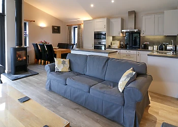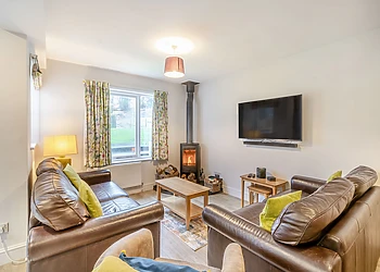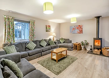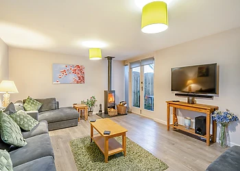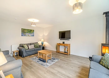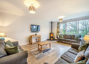 Featuring a spacious ground floor layout with bright and cheery entrance hall, an adjoining snug area with flat screen TV, a cosy sitting room also with flat screen TV with woodburning stove and access out to the decked area and views across the beautiful grounds. A modern woodburning stove makes for cosy evenings sitting together and talking about the day's adventures, enjoying a nice supper and maybe one or two bottles of locally brewed ale.