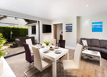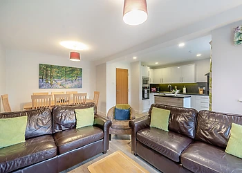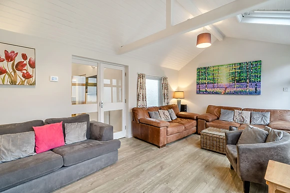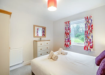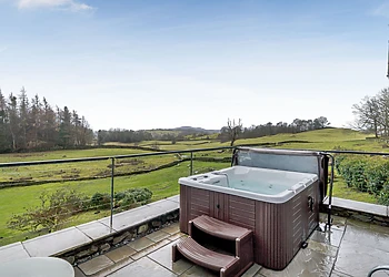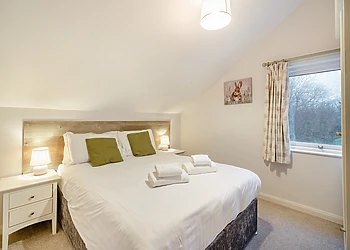 Upstairs the cottage boasts a further three bedrooms, all with modern en-suite facilities and one of the rooms is a family room sleeping four, a great bedroom for the kids to share. The main patio doors lead outside to a spacious decked area with a luxurious hot tub, making this an ideal spot to relax, take in the beautiful surroundings, read a good book and enjoy the soothing waters of the hot tub.