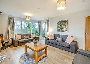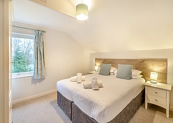 Set back on the eastern shores of the lake in a hidden glade, guests will be delighted by the lovely atmosphere afforded by the mature trees, wild flowers, bracken and the local wildlife. A great location for a group of friends, walking group or large family to get together and embrace a memorable break; enjoy the beautiful walks from the doorstep and return home and enjoy a good relaxing soak in the hot tub.