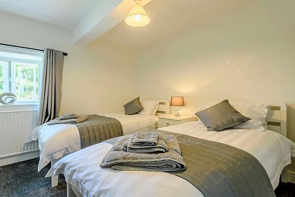 The accommodation offers three bedrooms, comprising one double, one king-size, and one twin room, all furnished to provide a comfortable stay.