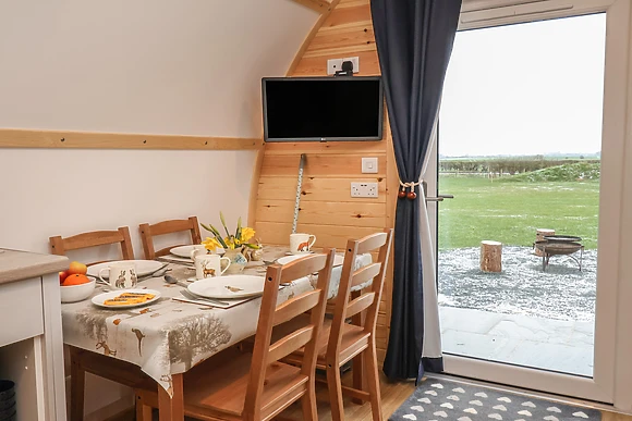 After a day full of exploration, cross the threshold into your new home-from-home and head into the kitchen area where you can rustle up delicious meals with the help of the hot plates and microwave, to be enjoyed around the dining table. On warmer evenings, step outside to fire up the barbecue and indulge in an alfresco affair at the picnic table with views across the fields; or relax in the bubbling hot tub; the perfect place to admire the stars filling the sky.
