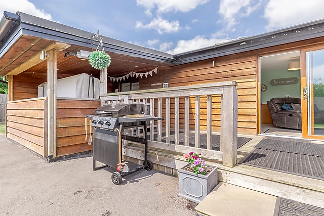 Outside this lovely lodge there is a secure, enclosed, pet-friendly garden with an undercover hot tub, gas BBQ and pastoral views all around, you would be forgiven for not leaving the lodge during your stay! You may be rewarded by the sight of a streak of blue as a Kingfisher flies by the owner's pond.