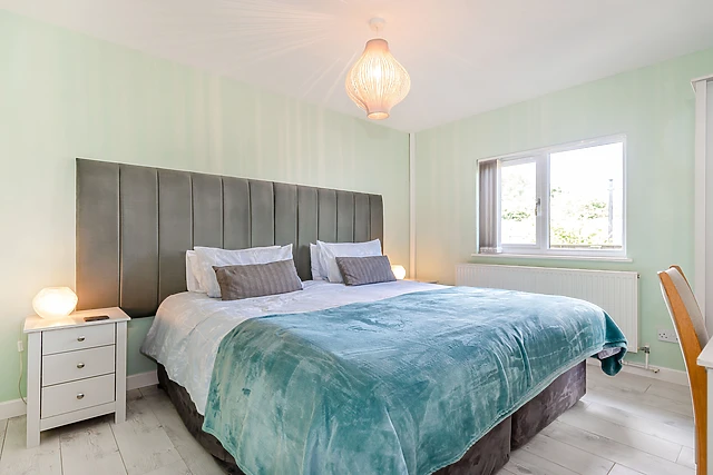 The accommodation offers such flexibility it will be perfect for most guests. The master bedroom has a king-size bed with an en-suite shower and patio doors onto a breakfast terrace.