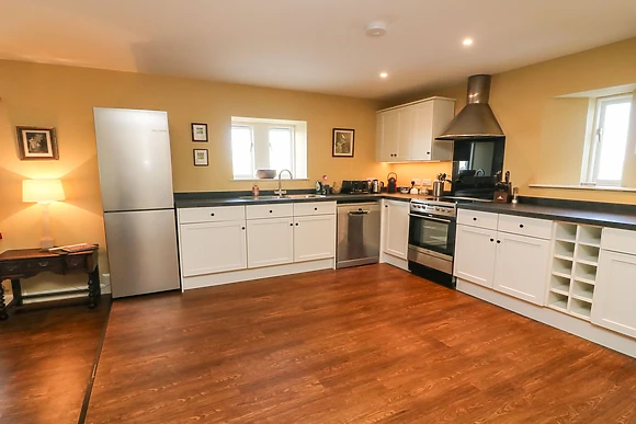 The kitchen is well-appointed with an electric oven, halogen hob, microwave, fridge/freezer, and dishwasher, catering to all your culinary needs.