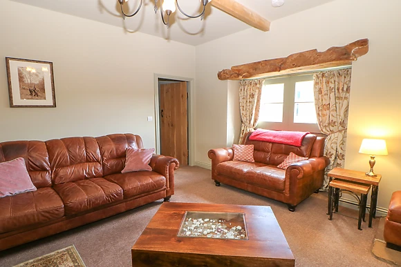 Boasting first-class accommodation, this spacious cottage offers two charming bedrooms which benefit from their very own TVs and en-suite facilities where you can unwind in a soothing bubble bath before stepping out onto the toasty underfloor heating. Spend your evenings in the homely sitting room, admiring the elegant leather furnishings, exposed beams, oak doors and a feature stone fireplace with a woodburning stove - a welcoming space to relax after an enjoyable day out exploring the countryside.
