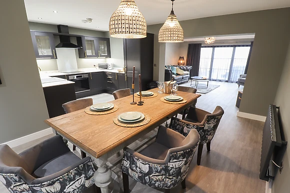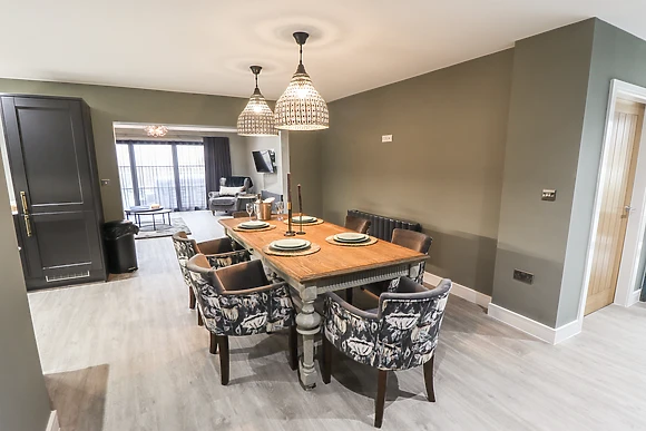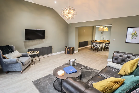 After unloading in the off-road parking space, make your way into your new abode, paying notice to a delightfully spacious sitting area complete with plush seating and a Smart TV. Sit back and unwind as the designated chef of the group prepares a feast in the well-stocked kitchen, ready to be enjoyed at the dining table over a bottle of bubbles; step out into an enclosed garden if you wish to bask in your surroundings a little longer and indulge a soak in the bubbling hot tub as the stars appear overhead.