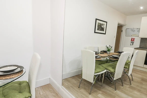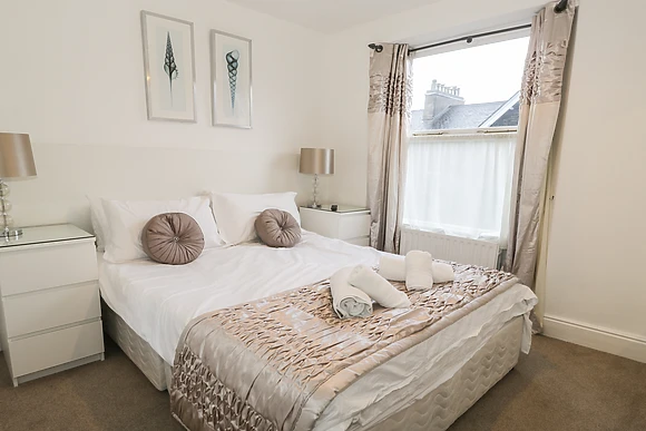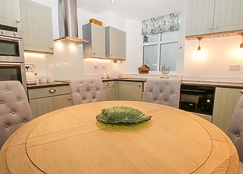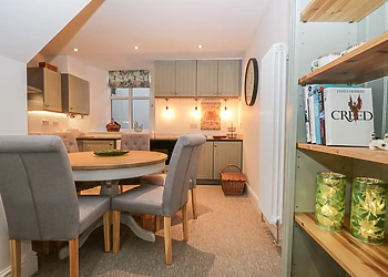 Boasting the feel of a modern holiday home, Mrs Puddleducks features solid wooden floors throughout. On the lower ground floor is a diner kitchen, equipped with electric cooker and hob, microwave, dishwasher and fridge.