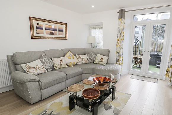 At the rear of the property, French doors lead out onto a patio area and hot tub. The cottage also has private parking for one car and a parking permit for one additional car.