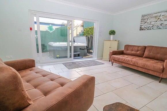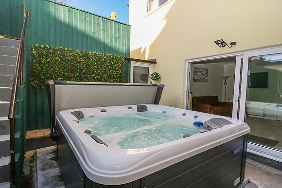 Yes, the property features a luxurious hot tub, providing guests with the perfect opportunity to relax and unwind in the privacy of the enclosed patio area.