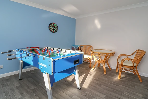 Indeed, the property features a games room with table football and a selection of board games, as well as multiple Smart TVs and a DVD player with a variety of DVDs.