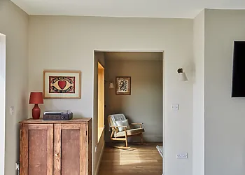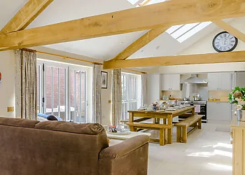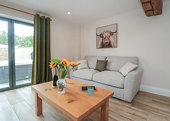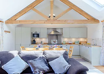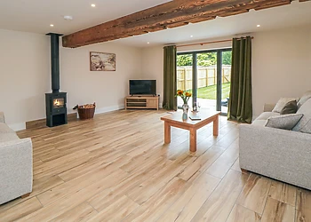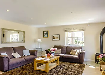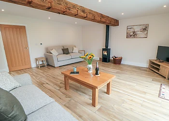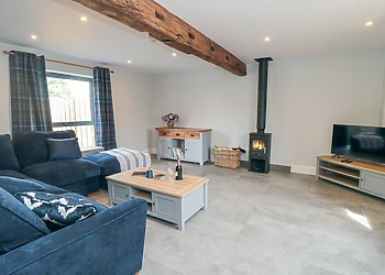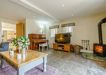 Step into the cosy living room, where original beams, a stone mantel, and a wood burner create a warm atmosphere.