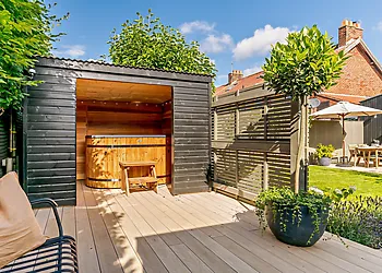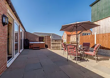 The outdoor area is equally impressive, featuring a sunken hot tub, an outdoor kitchen, and a BBQ area, all set in an enchanted garden with fairy lights and a sensory walkway.