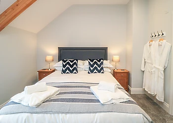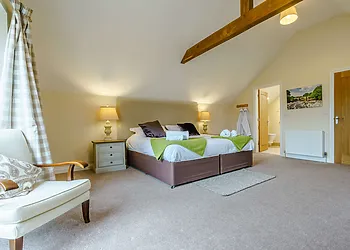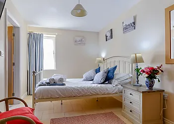 The cottage features two bedrooms, including a king-size room and a bunk bedroom, making it ideal for families.