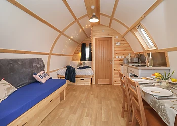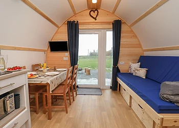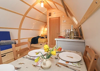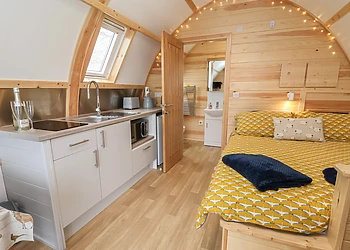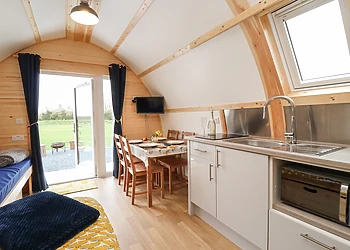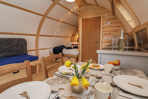 Settled amongst the rolling fields of Little Kelk near Bridlington, East Riding of Yorkshire is Parliament. This fabulous glamping pod benefits from a fabulous location with easy access to the breath-taking county’s coast and the fun-filled North York Moors National Park, it also boasts a welcoming, studio-style interior and a private garden evening perfect for relaxing evenings; a wonderful choice for couples, small families or friends looking to holiday in Yorkshire.