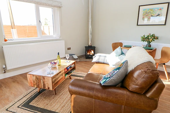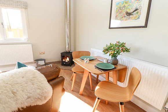 Yes, the open-plan living space includes a cosy woodburning stove, adding warmth and ambiance to your stay.