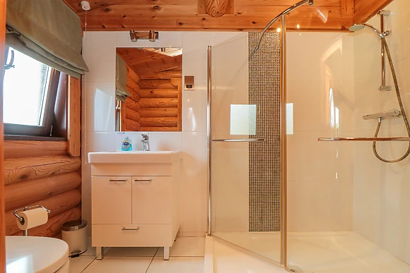 A sleek bathroom offers a warm shower, or a soak in the tub. Make a holiday to remember with a stay at the welcoming Blackwell Lodge 3.