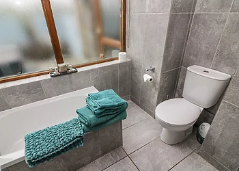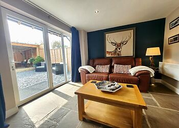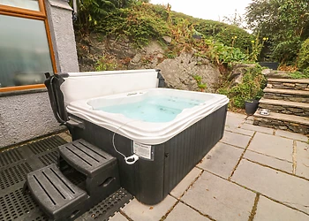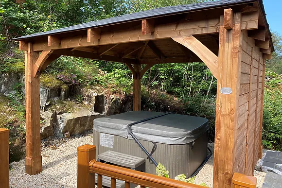 Step outside to discover a private decked area with seating, ideal for alfresco dining or sipping local ales. The highlight of your stay is sure to be the secluded hot tub, offering relaxation under the stars after a day of exploring.