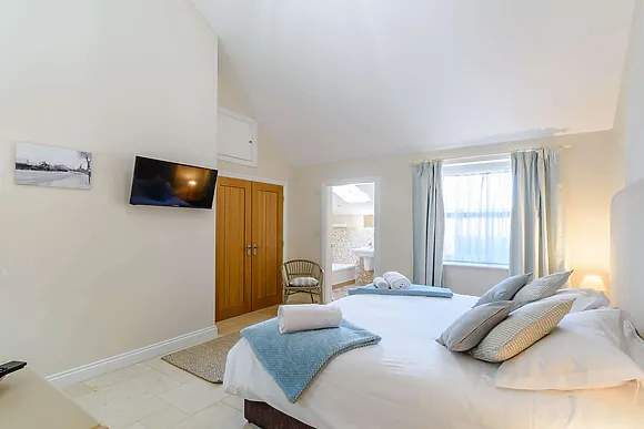 The third bedroom is a cosy double with an en-suite shower, ensuring privacy and convenience for all guests.