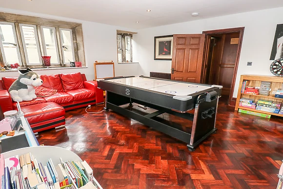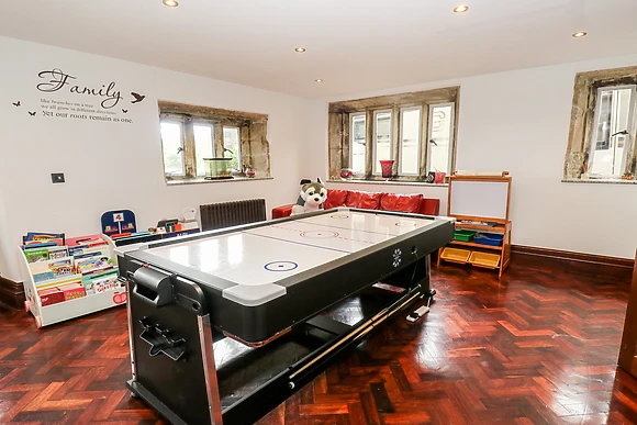 Once you’re ready to relax, select between two sitting rooms, one complete with a woodburning stove and the other with a gas fire, offering a warm place to unwind with a good book; the games room is also available for a competitive evening of pool, darts or ice hockey, a haven for teenagers. On the first floor, you'll find six beautiful bedrooms - a super-king-size with study area and en-suite bathroom, a super-king-size with Smart TV (zip/link), a king-size with en-suite wet room, a king-size (zip/link), a further king-size, and a 1 x king-size (zip/link, can be twin on request) - plus a bathroom; two cloakrooms also rest on the ground floor for ease.