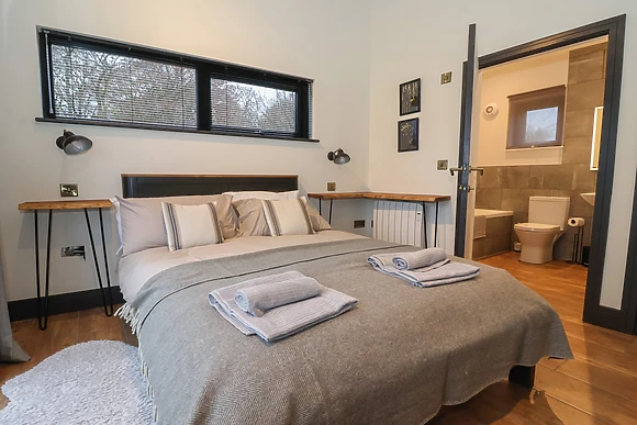 Skylark features two cosy bedrooms, one with a double bed and en-suite bathroom, and another with twin beds, ensuring everyone has a comfortable place to rest.